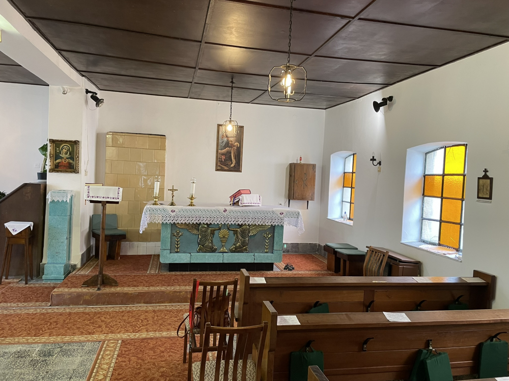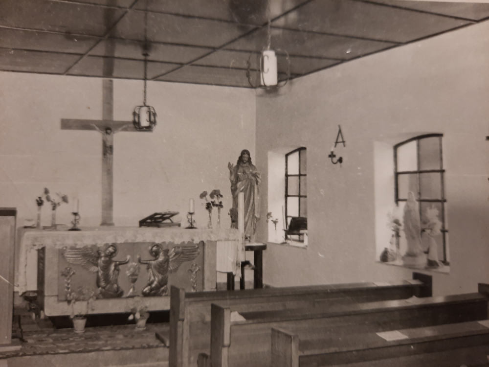 A mánfai Szent István imaház a sikondai kápolna megmentett oltárával és padjaival 1974-ben[25]